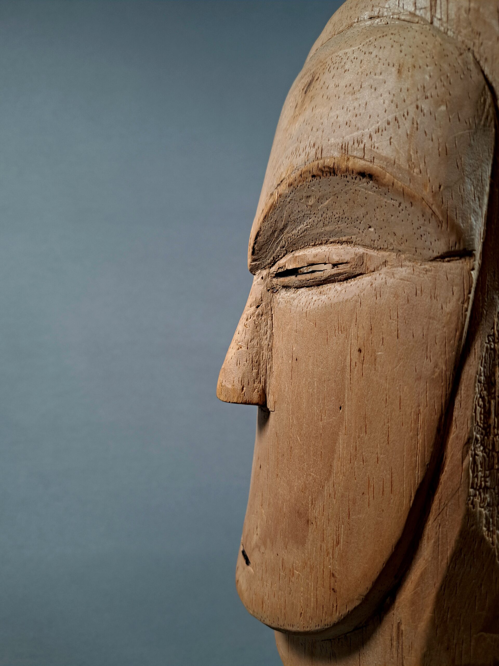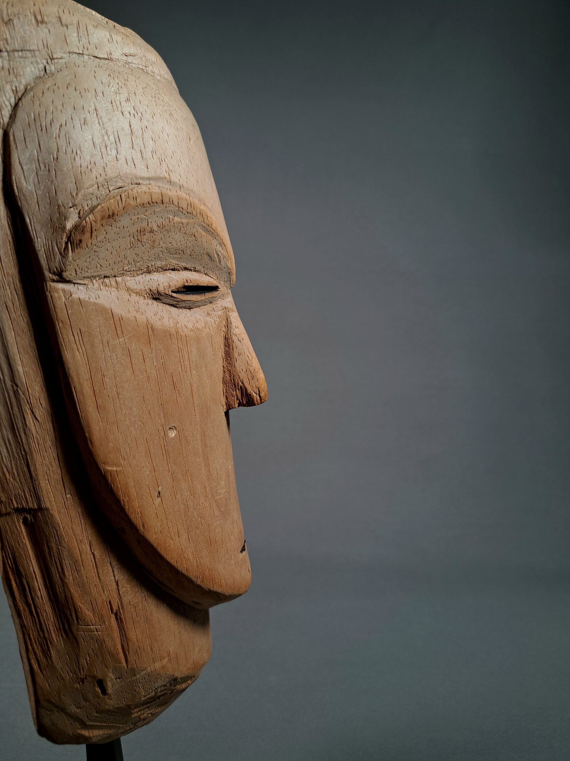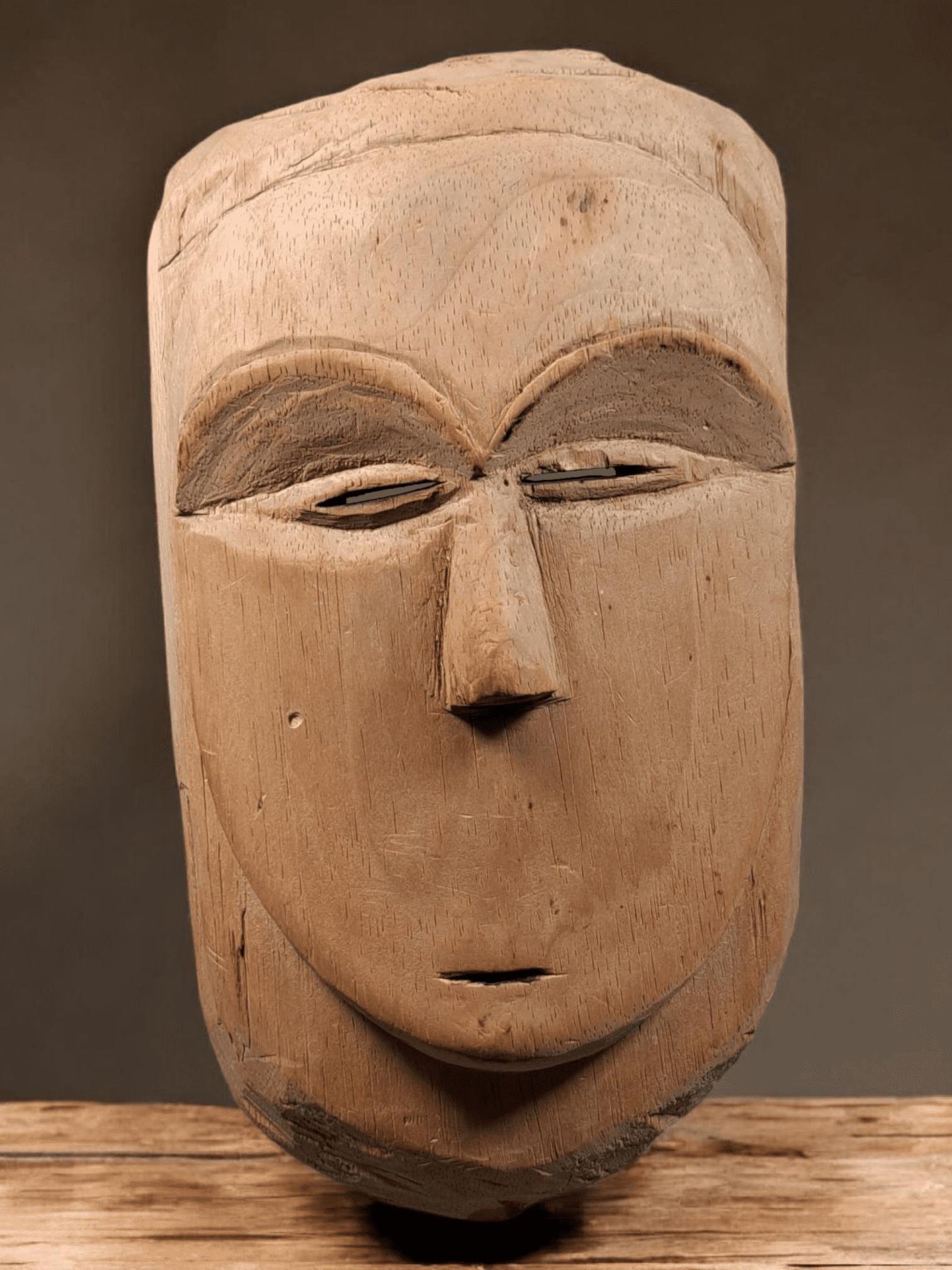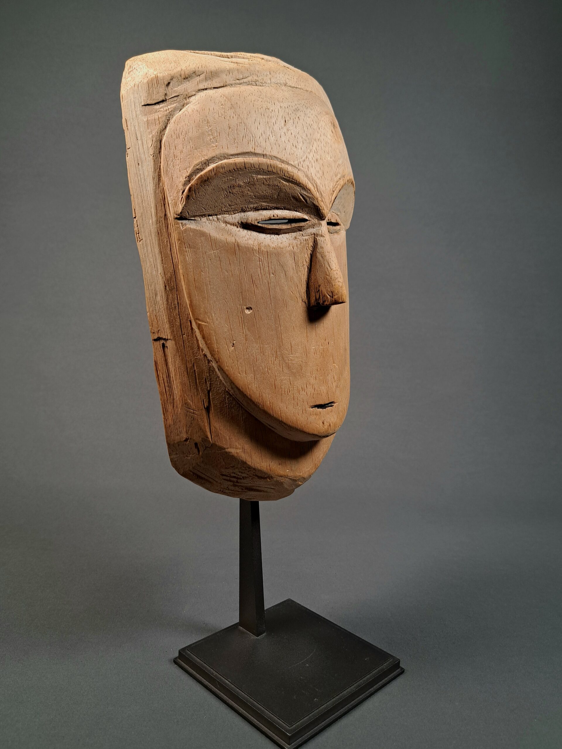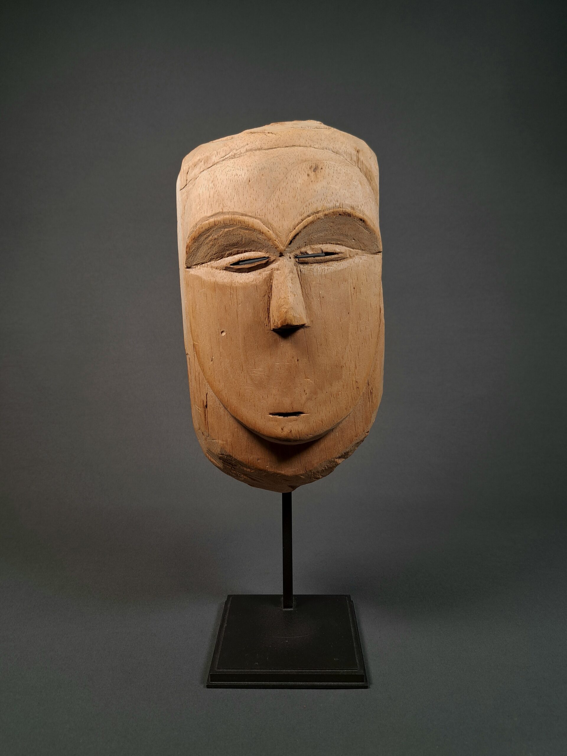 This mask is in Europe before 1959. Likely never danced or briefly used as ritual object. See as reference a very similar mask in the AHDRC with number 0045964 from the Willy Mestach archive.